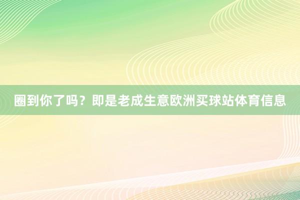[欧洲买球站体育信息] 圈到你了吗?即是老成生意欧洲买球站体育信息