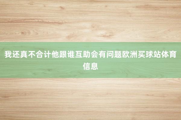 [欧洲买球站体育信息] 我还真不合计他跟谁互助会有问题欧洲买球站体育信息