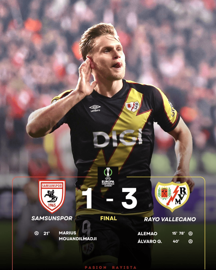 虎扑03月13日讯在刚刚欺压的一场欧协联1/8决赛首回合的较量中,巴列卡诺在客场3-1打败了土超球队萨姆松体育。 巴列卡诺的替补时尚阿莱芒在本场比赛中大放异彩,他的两粒进球匡助球队3-1取胜,阿尔瓦罗-加西亚也有一球入账。 阿莱芒的第二粒进球格外精彩,他在禁区前沿一个漂亮的马赛回旋径直过掉了两名夹抢他的后卫,径直拔脚怒射将球抽入右下角: